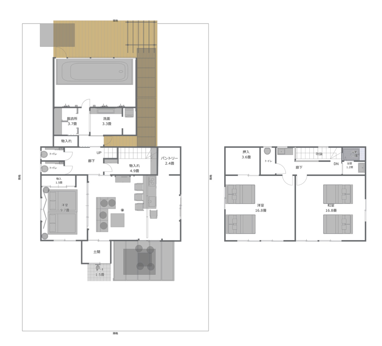 7~8名様でのご利用時は、2階のクイーンベッド(ロングサイズ)を2名様で共有してお使いいただく形になります。
