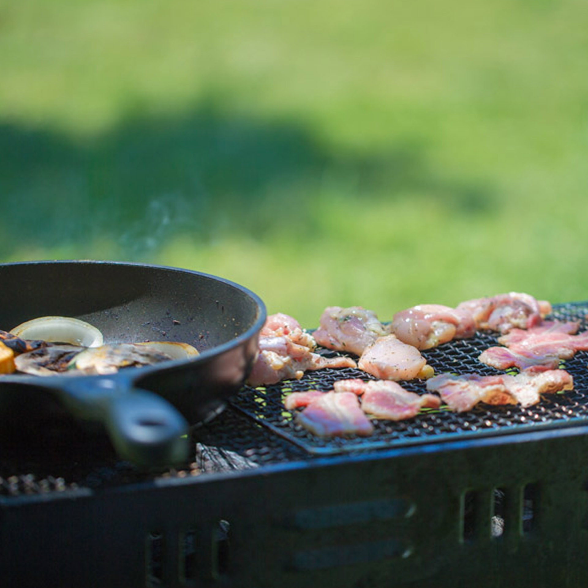 笑い声と炭の香りが、