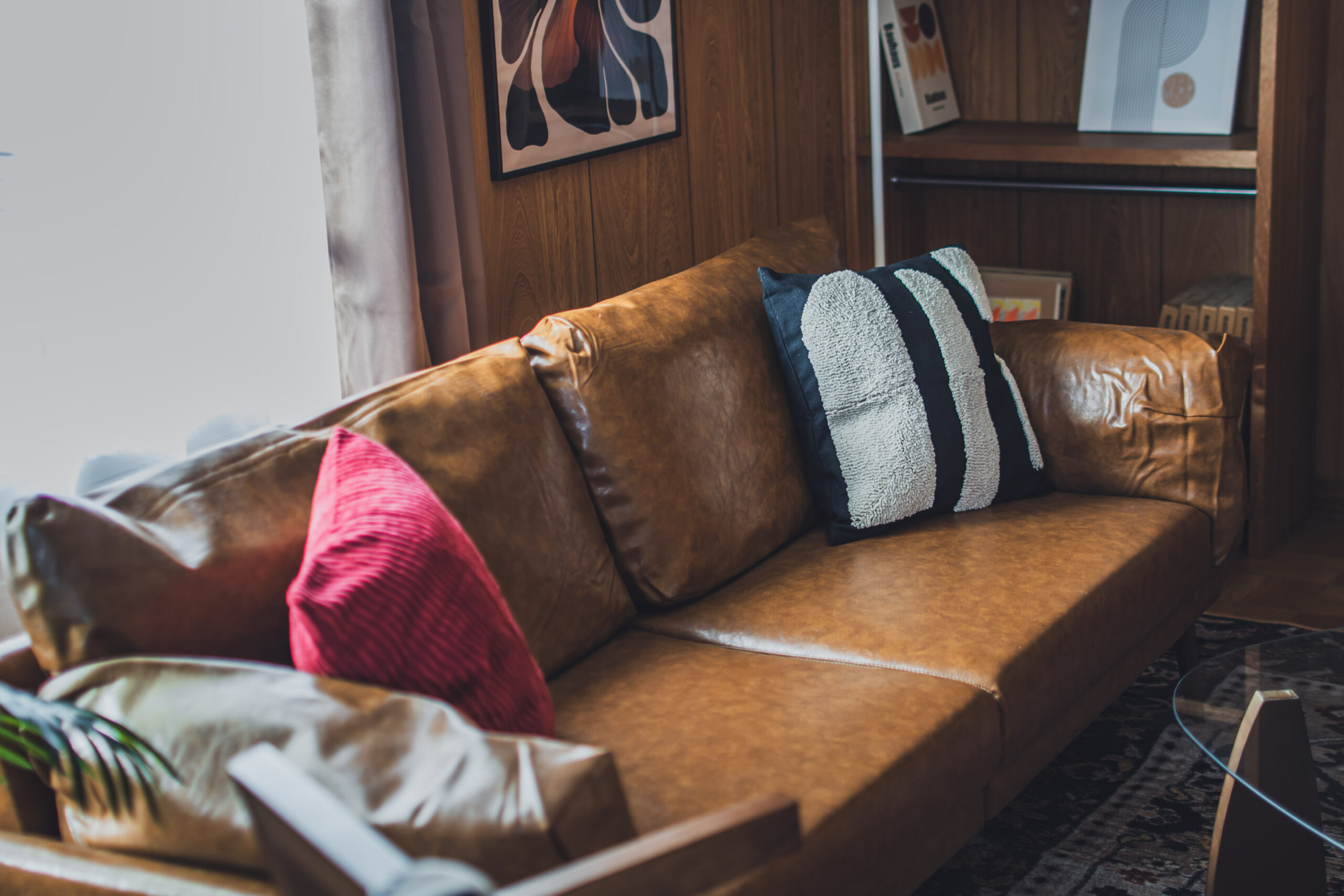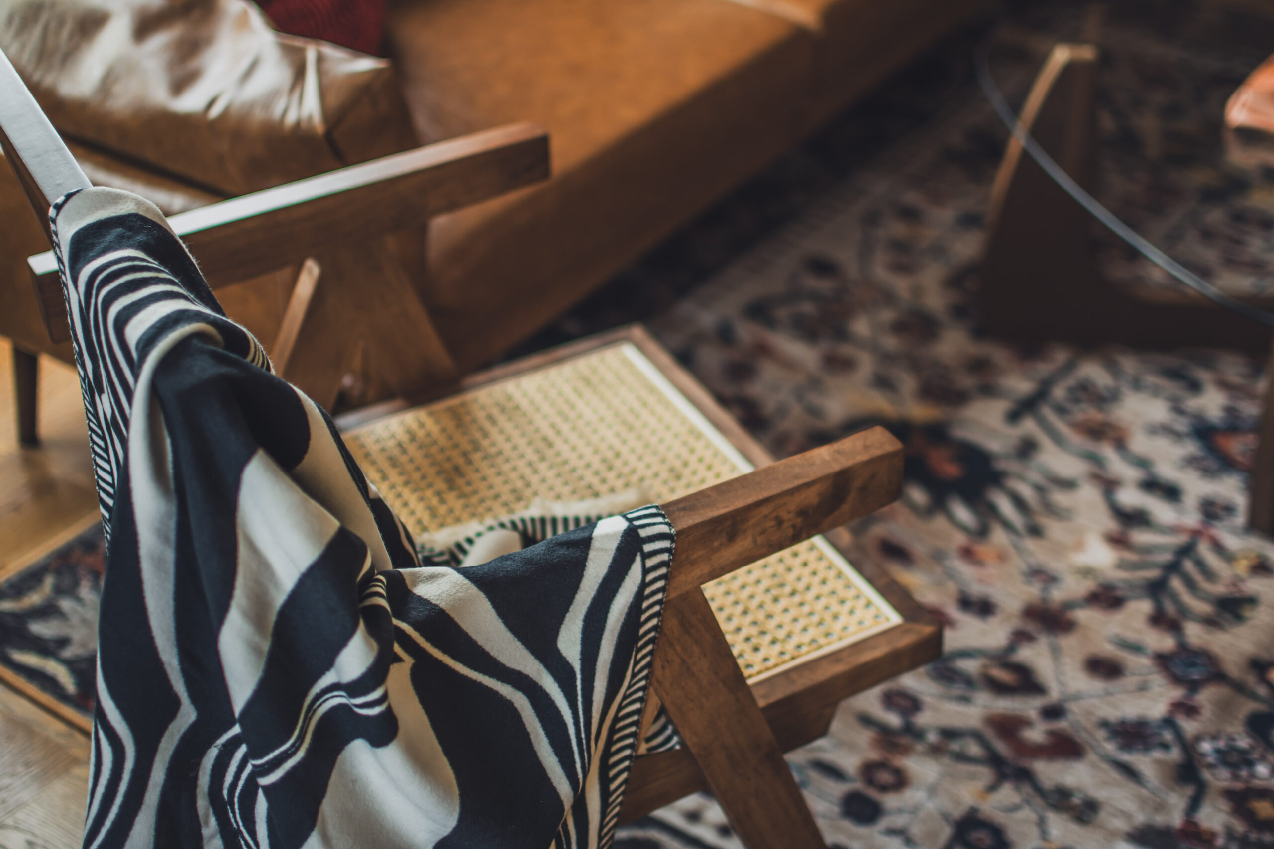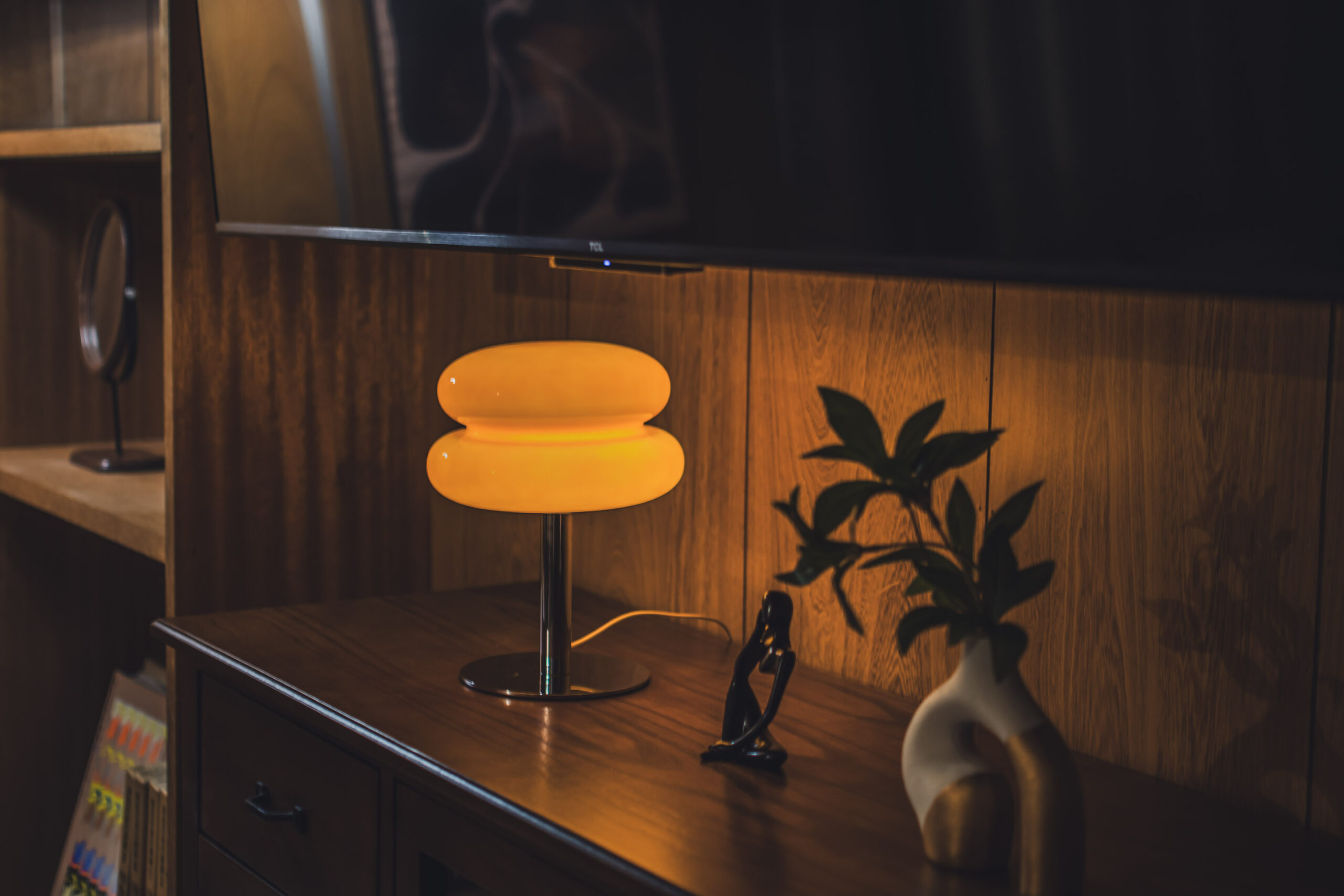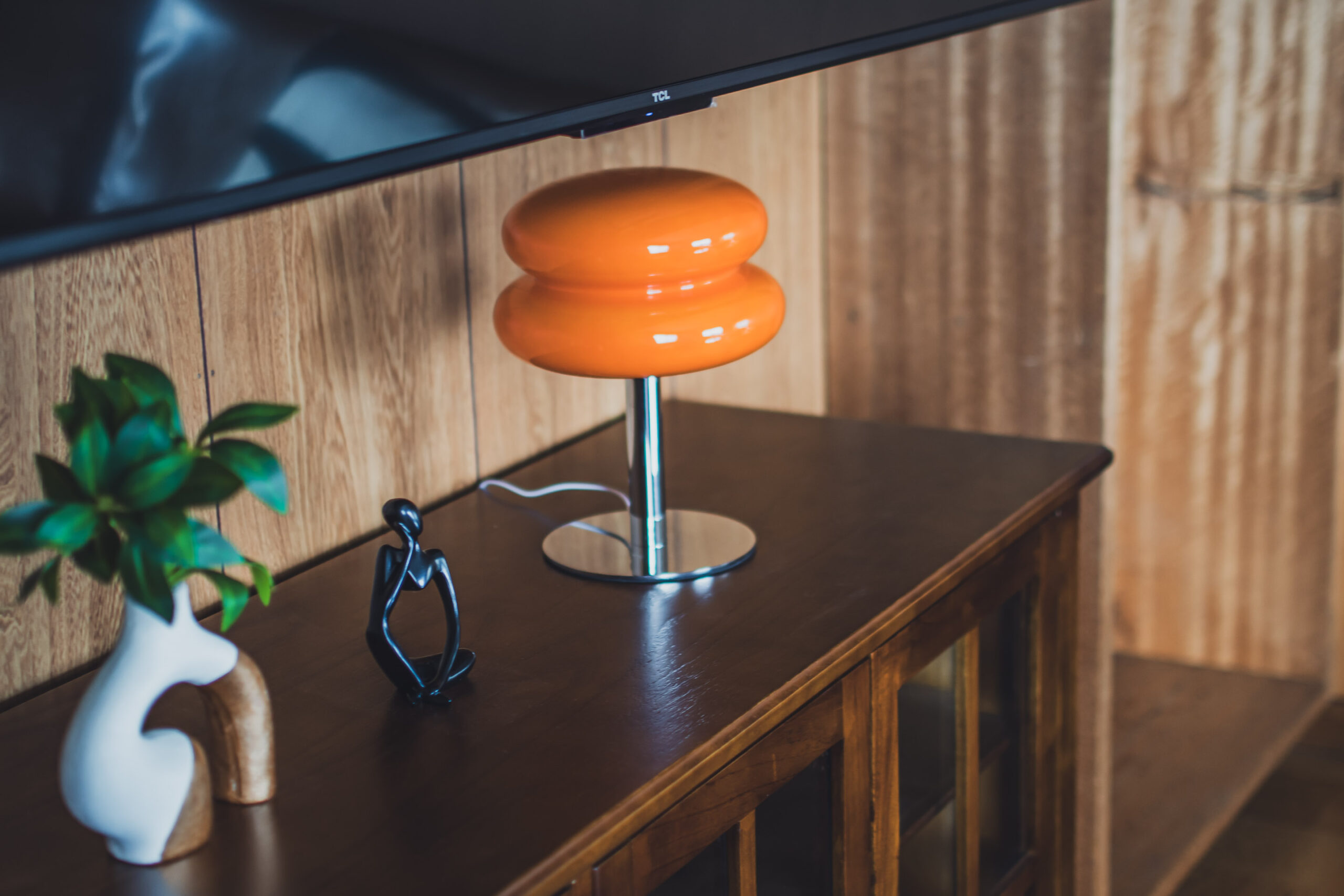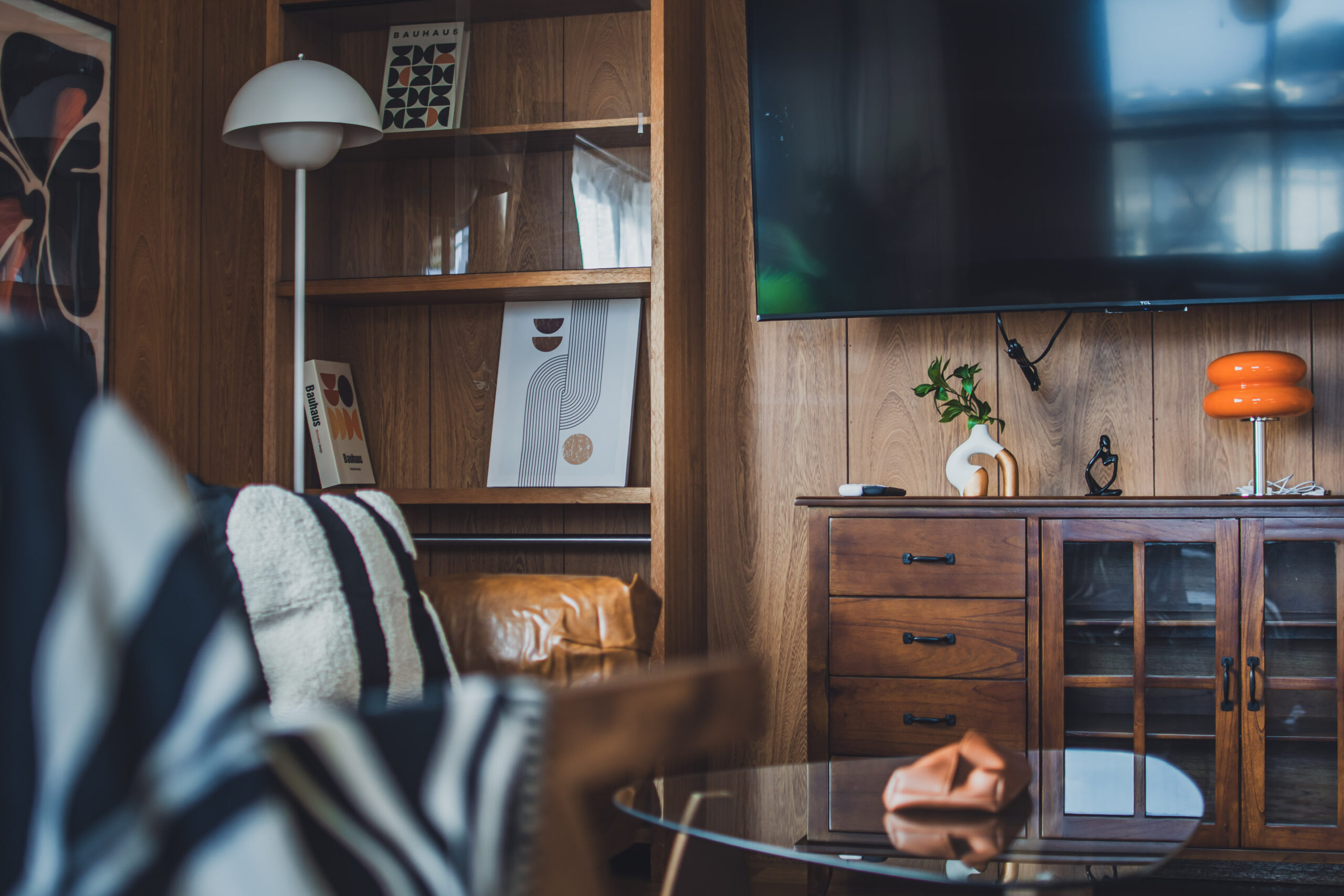 ミッドセンチュリーの家具や照明を調和させた空間。
