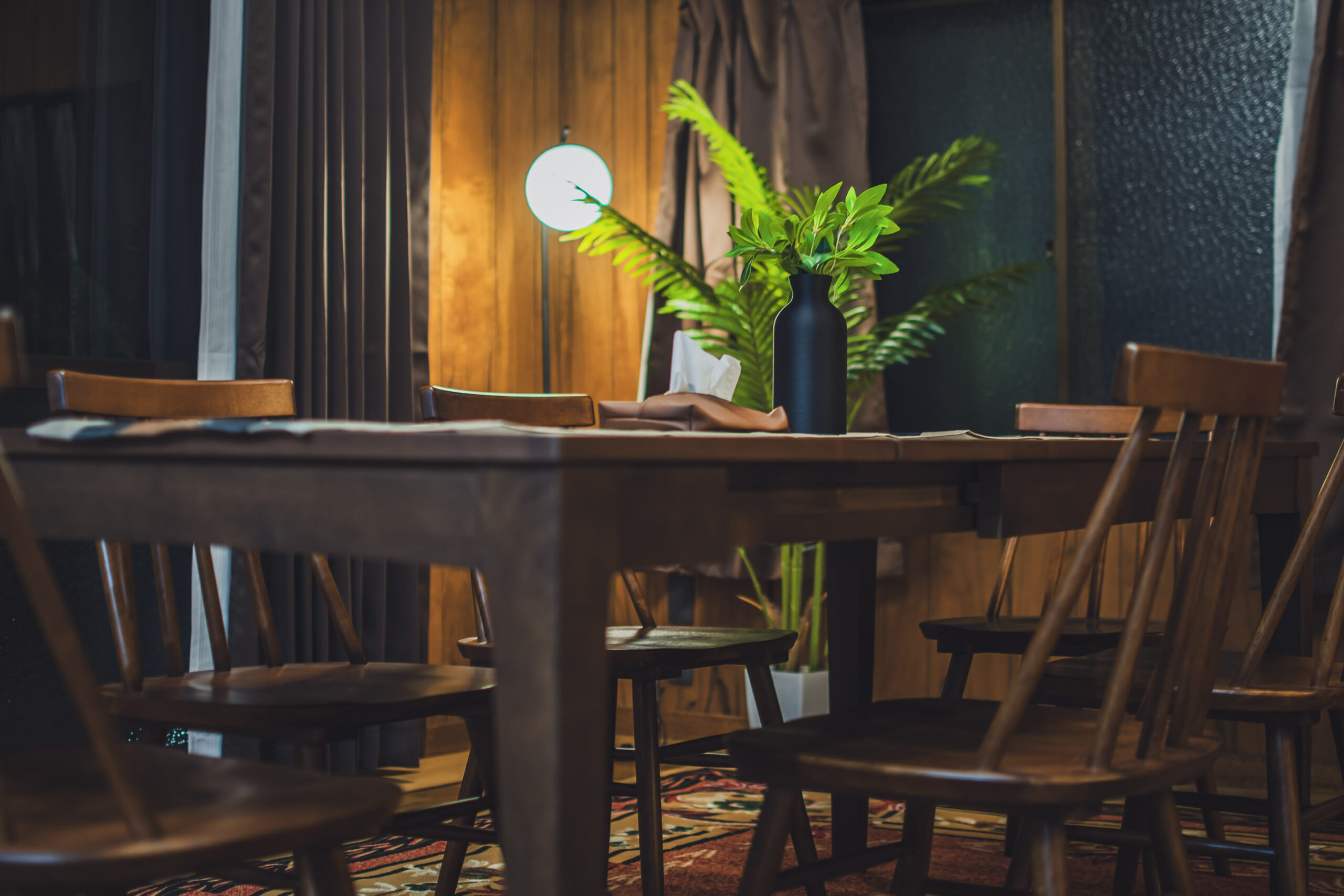 灯りの落ち着いた空間でゆっくりとした時間が流れます。